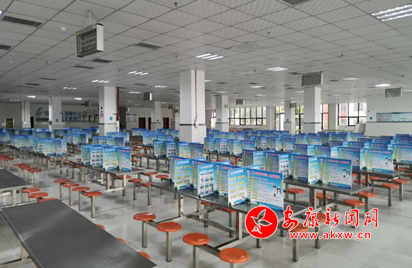 學校在食堂復工前,對食堂工作人員實施了嚴格的健康篩查。工作中嚴格按照每日監(jiān)測消毒措施,做好個人健康監(jiān)測。食堂內(nèi)環(huán)境衛(wèi)生及餐具消毒,做到謹慎細致。師生就餐前,統(tǒng)一按要求洗手,取餐窗口一路列隊,且前后左右間距1米。就餐時每桌采用擋板進行隔斷,避免面對面交叉。取餐就餐均分級分班錯峰錯時進行,避免人員聚集。