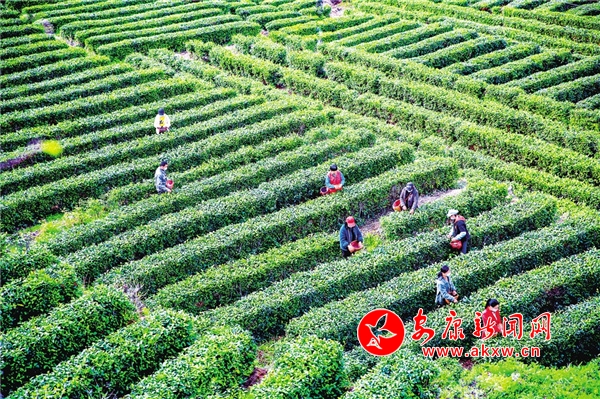 近年來,白河縣卡子鎮(zhèn)發(fā)展茶園面積近1300畝,帶動(dòng)當(dāng)?shù)?20余戶200余人,實(shí)現(xiàn)戶均增收2000元以上。圖為近日,茶農(nóng)趁著濃濃春意在卡子鎮(zhèn)東壩桂花村茶園忙碌著。