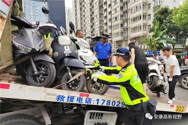 針對車輛亂停亂放等交通秩序管理問題,執(zhí)法人員對花園大道、秦嶺大道、學(xué)府路、高新四路等主次干道沿線開展全天候整治,并向沿街商戶下發(fā)摩托車、電動車規(guī)范停車告知書。對占用人行道、消防通道、公交泊位等行為進(jìn)行拍照取證后強(qiáng)制拖移。同時,向市民群眾發(fā)放文明交通宣傳彩頁,引導(dǎo)大家自覺摒棄交通陋習(xí)、遵守交通法律法規(guī),安全文明出行。