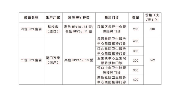 (4)本次僅有二價、四價HPV疫苗,數(shù)量有限,生產(chǎn)企業(yè)后續(xù)將會逐批供應,請耐心等待;可關注【漢濱疾控】微信公眾號,及時了解預約消息。