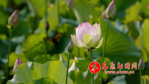 走進荷塘,連片的荷葉已經(jīng)舒展開來,朵朵荷花挺立其中,有的已經(jīng)綻開美麗的外衣,爭奇斗艷;有的正孕育著花骨朵,靜靜等待花開。荷塘里花香四溢,粉白、淡紅的荷花在微風(fēng)的輕撫下,搖曳著曼妙的身姿。優(yōu)美的景色吸引了許多游客走進荷塘打卡拍照,盡享夏日好時光。