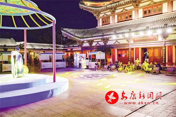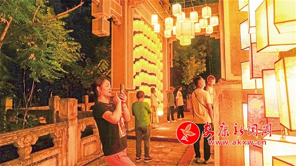 在安瀾樓南側(cè),刻有金州八景的燈籠高高懸掛,穿上漢服,提著燈籠,走向?yàn)懮蠠魰?huì),感受花燈如晝。移步廊道,徜徉安瀾夜市,感受煥然一新的公園氛圍、琳瑯滿(mǎn)目的文創(chuàng)精品和目不暇接的特色非遺。