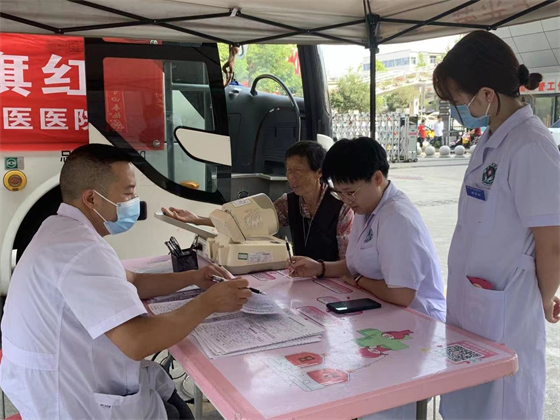 早上10點(diǎn),醫(yī)務(wù)工作者們?cè)讷I(xiàn)血車前排隊(duì)等候,大家井然有序地進(jìn)行信息登記、健康征詢、血壓測(cè)量等程序。