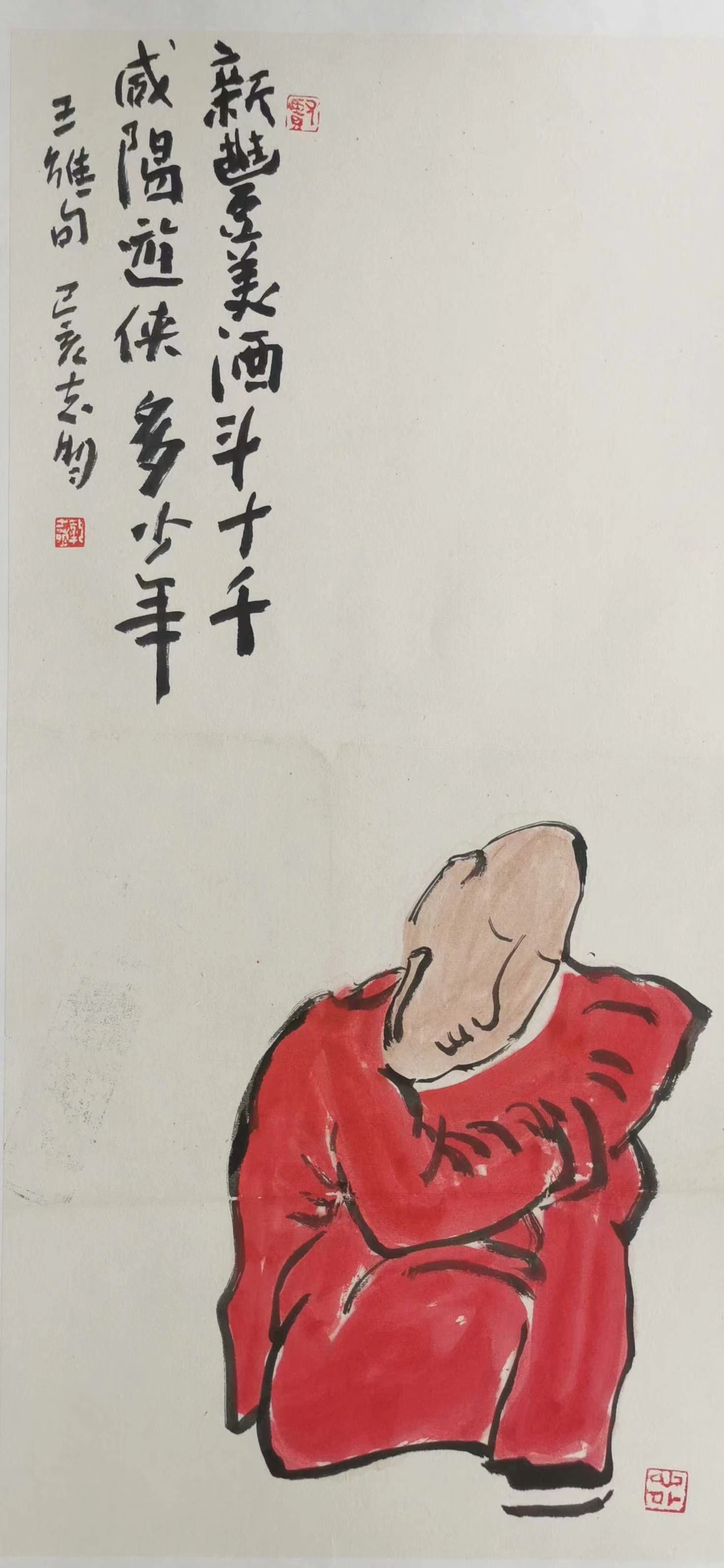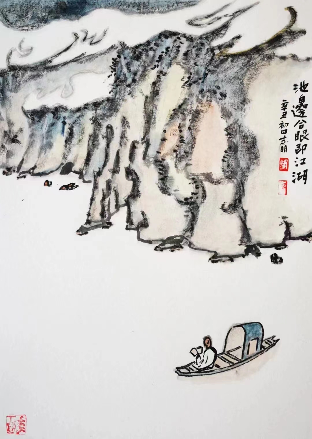 記得那一年的端午節(jié),鞏志明發(fā)來短信,是他寫的一首詩:綠粽黃酒聚江邊,白帆紅燭祭屈原。三千清淚流不得,九萬渾念飄上天。誰有郁悶誰散淡,何謂圓滑何忠奸。十丈風(fēng)塵古今在,談笑真?zhèn)位聼煛?017年,我遷新居,鞏老師為我寄來小品畫《福到眼前》,我很喜歡,并懸掛至新居玄關(guān)。這些年,鞏志明老師常做影展畫展策劃及影評講座,自已也臨池不輟,水墨丹青,寄情抒懷,他的文人小品有思想性、有創(chuàng)造性。雖畫的是松風(fēng)明月,小舟流水或遠(yuǎn)古人物,但都寄托了他當(dāng)下的心境,以消塊壘。誠如有人評論他為“吾師真文人,畫亦真性情!”他不僅只是身居畫室的怡情文人,他亦是心憂天下的豪俠。面對世間不平事,他也是激揚文字,揮斥方遒!在功利的當(dāng)下,鞏志明尤其顯得難能可貴!?