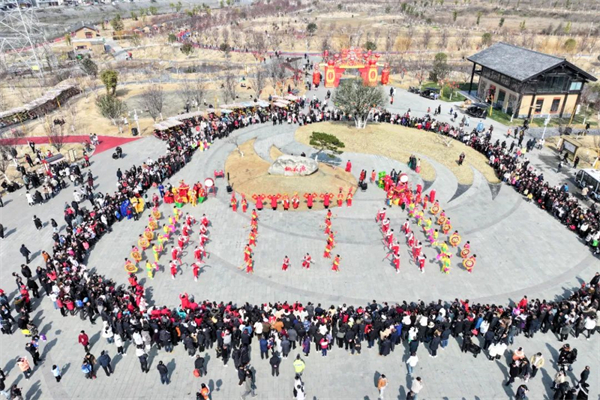 豐收大秧歌、龍騰腰鼓隊(duì)、喜慶蓮響、彩船、花轎大聯(lián)歡、社火、小場(chǎng)子戲等精彩的傳統(tǒng)民俗節(jié)目在桃花源相繼上演。新穎的編排、精彩的表演,令現(xiàn)場(chǎng)游客大飽眼福,叫好聲、喝彩聲此起彼伏。當(dāng)天近25000余名市民游客前往桃花源觀看表演、打卡游園,處處洋溢著“歡歡喜喜過大年”的節(jié)日氣氛。