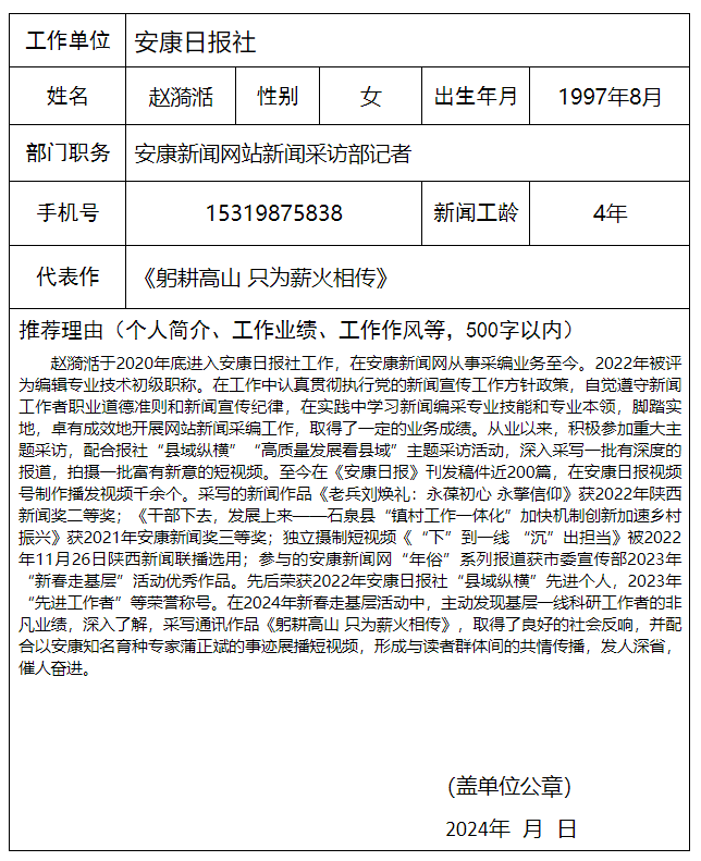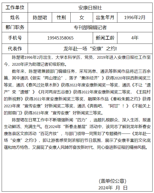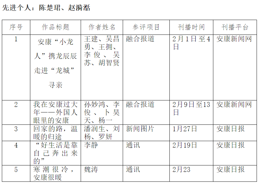 安康日?qǐng)?bào)社擬參評(píng)2024年“新春走基層”先進(jìn)個(gè)人及新聞作品公示