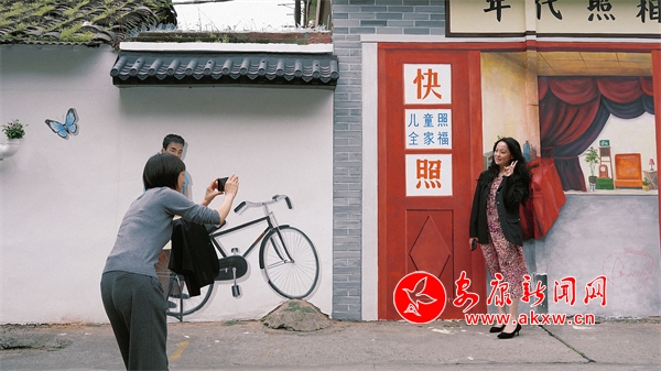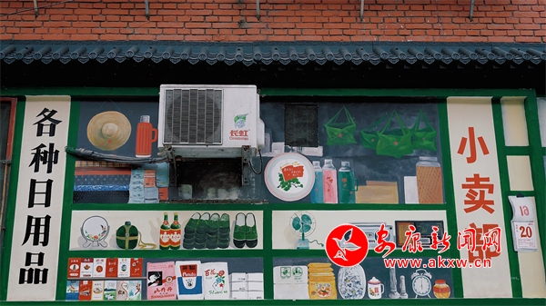 一支畫筆,一面白墻,一墻一風(fēng)景,一墻一文化,不經(jīng)意間,某個轉(zhuǎn)角就能與斑斕的墻繪撞個滿懷。漫步在漢濱區(qū)老城街道大北街,色彩斑斕的街道給這座城市的街巷生活增添了一絲色彩和靈魂。上世紀(jì)六七十年代的小賣部、照相館、電影院、二八大杠自行車等元素……一幅幅充滿鄉(xiāng)愁記憶的彩繪,讓冰冷的街道逐漸生動活潑起來。(通訊員 張敏 張媛)