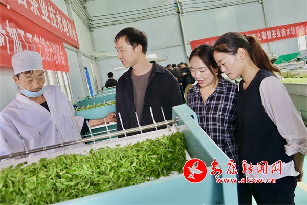 高翔“接單”后,一邊聯(lián)合鎮(zhèn)農綜站同縣上的茶技中心對接,聘請專家到鎮(zhèn)指導,一邊積極向鎮(zhèn)上的茶飲企業(yè)和茶農宣傳,組織大家前來聽講座、現(xiàn)場觀摩,有了高翔的“搭橋”,正陽鎮(zhèn)茶技培訓如期順利舉行,活動當天,茶葉加工場里熱鬧非凡,30余名茶企負責人和茶農圍著專家現(xiàn)場提問,茶技中心專家親自示范、現(xiàn)場解答,大家聚精會神、虛心請教,通過系統(tǒng)的理論學習和動手實踐,進一步掌握和提升了茶園管護和茶葉加工的技術。