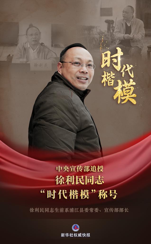 中央宣傳部追授徐利民同志“時代楷?!狈Q號