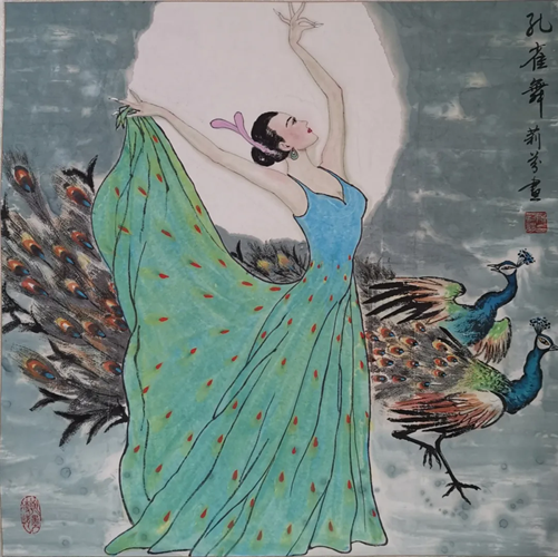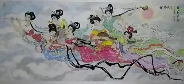 解大姐是陜北人,性格開(kāi)朗、直率,說(shuō)話(huà)中間或帶出一些濃重的陜北口音。雖說(shuō)她主業(yè)從于政界,但她微笑的背后卻潛藏著不可掩飾的藝術(shù)天賦,揮發(fā)著令人奪目的藝術(shù)才情。繁雜的政務(wù)工作之余,她創(chuàng)作不輟,堅(jiān)持不懈,居然在多個(gè)藝術(shù)門(mén)類(lèi)收獲頗豐,好評(píng)連連。寫(xiě)小說(shuō),她寫(xiě)出幾十萬(wàn)字的長(zhǎng)篇出版發(fā)行;寫(xiě)劇本,竟拍成了電影予以公映;學(xué)國(guó)畫(huà),亦讓藝術(shù)界的大咖贊口不絕。我雖不才,空有浮名,但深耕藝界多年,對(duì)于其中的好賴(lài)還能分出一二。我感到,一個(gè)人的人品和藝品基本一致,解大姐的藝術(shù),是扎根于她熟悉的陜北大地的藝術(shù),是生長(zhǎng)在山峁峁上經(jīng)歷風(fēng)霜雨雪的藝術(shù),就像那陜北倔強(qiáng)的疙瘩柳,散發(fā)著對(duì)土地對(duì)生活的親近和熱情,對(duì)人生價(jià)值實(shí)現(xiàn)的不屈和追求??吹剿膰?guó)畫(huà)新作,有陜北剪紙等民間藝術(shù)的滋養(yǎng)和影響,真切而樸實(shí)。她的飛天人物系列,泥古而不落窠臼,使我想到疙瘩柳條隨風(fēng)擺動(dòng)的婀娜風(fēng)姿,溫溫潤(rùn)潤(rùn),令人遐思和向往;她的花鳥(niǎo)畫(huà)作,使我想到陜北山野一片蒼茫之間,一朵兩朵盛開(kāi)的山丹丹花,嬌艷得令人不忍觸手;她的山水畫(huà)作,又猶如陜北山原上嫩黃的棗花,洋溢著撲面而來(lái)的質(zhì)樸、清新和率真之氣。