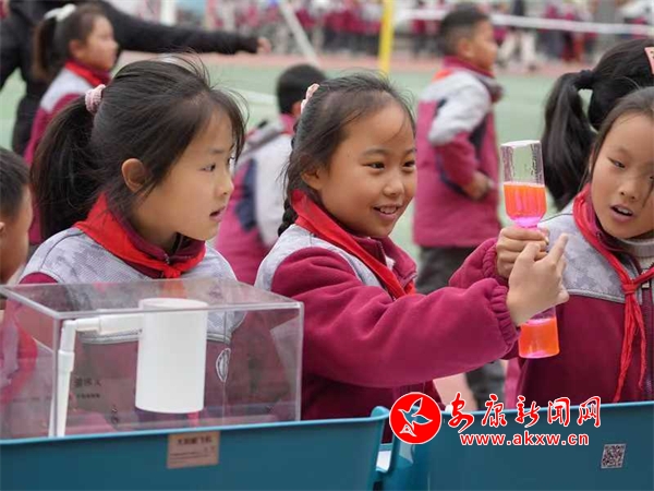 在各個科學(xué)實(shí)驗(yàn)項(xiàng)目前,同學(xué)們駐足停留,認(rèn)真觀察、反復(fù)操作,沉浸在知識的海洋與科技的奧秘中,操場上不時傳來陣陣驚嘆聲。“我最感興趣的是機(jī)器人,通過手柄遙控能讓機(jī)器人模仿奔跑跳躍,跟我們打招呼,真是太神奇了,我以后要更加努力地學(xué)習(xí)科學(xué)知識,探索更多的未知領(lǐng)域?!蔽迥昙壱粚W(xué)生激動地說。