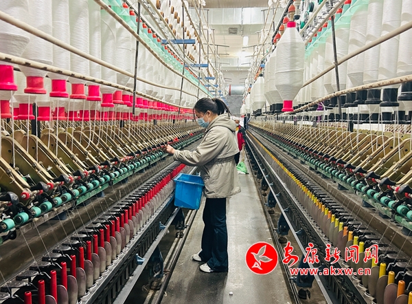 在陜西永豐特種紗線有限公司的生產(chǎn)車間,工人們忙碌地穿梭于機(jī)器間,雙手不時(shí)調(diào)整著紗線。該公司位于澗池鎮(zhèn)軍壩村,是一家主要從事包芯紗研發(fā)、生產(chǎn)和銷售,紡織原料、面料購(gòu)銷和紡織設(shè)備進(jìn)出口的現(xiàn)代化企業(yè)。