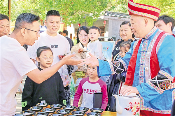 來自臺灣的游客阿偉第一次體驗這“驚心動魄”的待客禮,雙手接碗,仰頭飲盡,再用力將碗口朝下摔向青石板。“哐當”一聲脆響,瓷片四濺,周圍頓時響起一片喝彩。“摔碗的時候,心里真痛快!”阿偉笑著說。