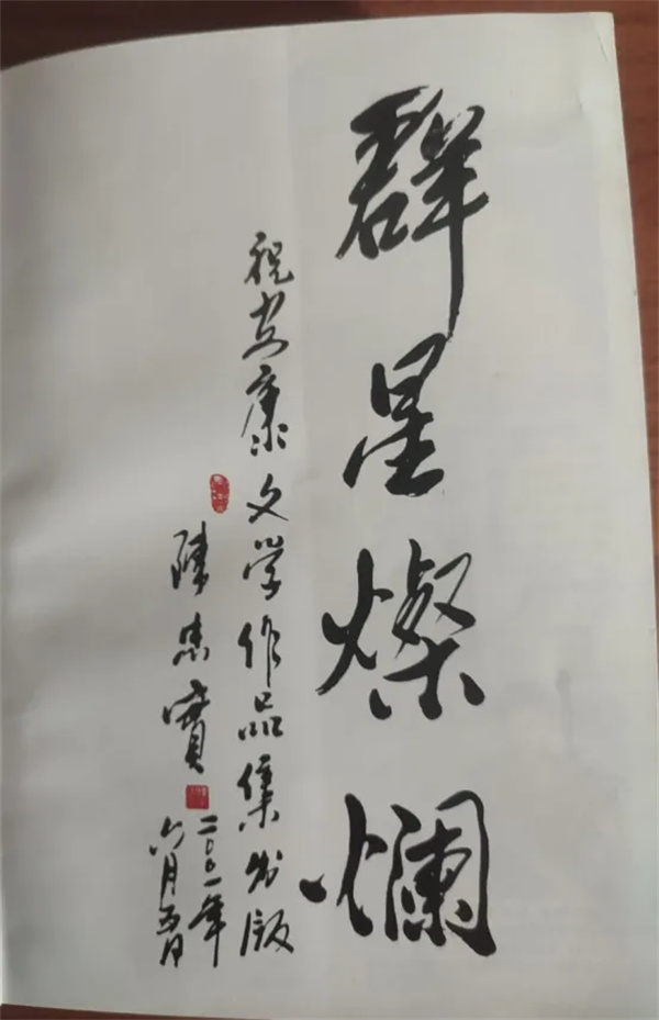 2001年5月下旬,我主編的《安康作家優(yōu)秀作品選》基本成型,編錄的有80多萬字,包括本市的中國(guó)作協(xié)、省作協(xié)、市作協(xié)會(huì)員180多人,原稿厚厚的一尺多高一墩了。出版前我想得有個(gè)壓軸的,便把一大包作品復(fù)印件不打招呼、就徑直寄給陳忠實(shí),附信說請(qǐng)他寫個(gè)序。大約一個(gè)星期就收到陳忠實(shí)回信,說我做了件好事、有的地市還沒有這樣弄過;說他太忙,作品倒是大概看了、安康他知道的作家都在里面,還行。但是太忙、實(shí)在沒有時(shí)間再仔細(xì)看,也就不好寫序,務(wù)必諒解……末了,那寄給他的復(fù)印件都沒退,倒是給寄來了橫的、豎的,長(zhǎng)短大小不一的、毛筆書寫在宣紙上的幾種形式的題詞“群星燦爛——祝安康文學(xué)作品集出版 陳忠實(shí) 二00一年六月五日”,每張題詞的宣紙還折疊得棱角分明、上下對(duì)稱。收到后,我的心里重騰騰的,想陳老漢下的功夫不小哩,只怕不比花費(fèi)一兩個(gè)小時(shí)、走馬觀花地寫個(gè)洋洋灑灑的三兩千字的序省事!《安康作家優(yōu)秀作品選》當(dāng)年出版后,有了反響、也有了結(jié)余。我專門委托在西安一雜志社打工的本土青年作者洪曉晴去西安找陳忠實(shí),送上3本書、并送上500元潤(rùn)筆費(fèi)。不料、陳忠實(shí)見了書高興,但堅(jiān)決不收這500元,并又給我來了一封信,解釋說文人都窮、出個(gè)書不容易哩!最后,信的結(jié)尾,陳忠實(shí)又幾乎是批評(píng)我,說我得有自己的創(chuàng)作哩!看來,陳忠實(shí)固然支持和欣賞編輯這種區(qū)域性系統(tǒng)性的作品集,但他更希望看到文學(xué)作者創(chuàng)作出具有個(gè)體生命體驗(yàn)及其獨(dú)特感悟的作品,文學(xué)的靈魂和生命,畢竟是創(chuàng)造。