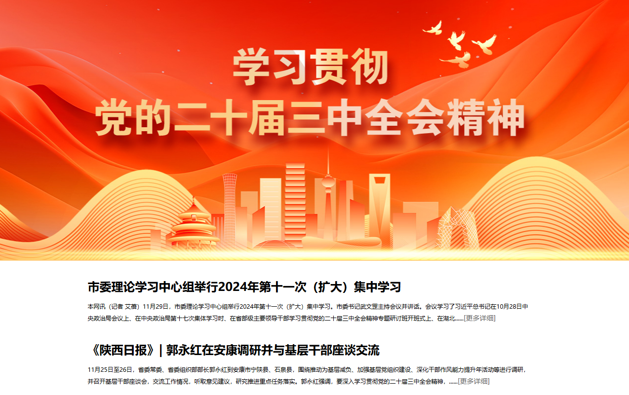 《全市市廳級領(lǐng)導(dǎo)干部和縣處級主要領(lǐng)導(dǎo)干部學(xué)習(xí)貫徹黨的二十屆三中全會精神專題研討班開班》(2024-10-16發(fā)布于安康發(fā)布公眾號)