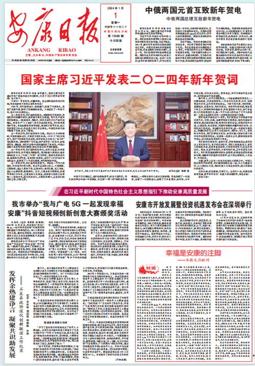 (2024年1月1日安康日報01版“幸福是安康的注腳——本報元旦獻詞”)