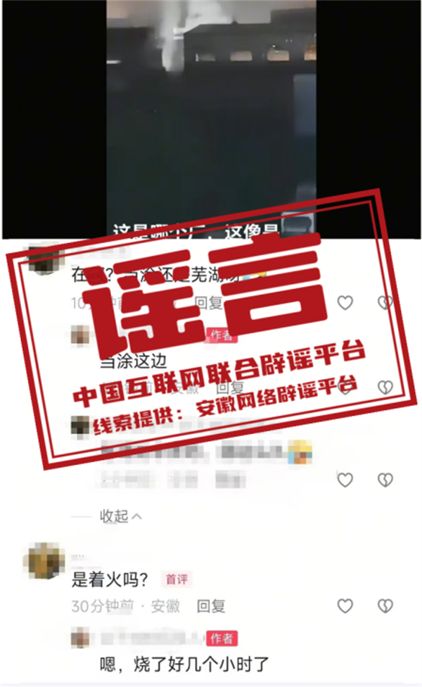 真相:近日,一網(wǎng)民在短視頻平臺發(fā)布視頻配文“這是哪個廠,好像是著火啦”,并在評論區(qū)稱“工廠在當涂、燒了好幾個小時”等。經(jīng)安徽省馬鞍山市當涂經(jīng)濟開發(fā)區(qū)應(yīng)急管理局和消防救援中心核實,當涂經(jīng)濟開發(fā)區(qū)境內(nèi)沒有發(fā)生火情火災(zāi),該視頻為虛假信息。(來源:“安徽省互聯(lián)網(wǎng)違法和不良信息舉報”微信公眾號)