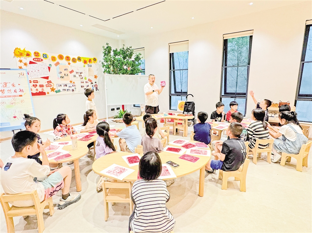 非遺老師正在為孩子們上非遺版畫課。賀珍珍 熊樂(lè) 攝