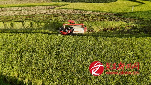 本網(wǎng)訊(通訊員 方亮 劉東)當(dāng)前正值水稻收獲的季節(jié),9月8日天氣轉(zhuǎn)晴,漢陰縣平梁鎮(zhèn)新河村的稻田里迅速熱鬧起來。村民們搶抓這一關(guān)鍵窗口期,以“機(jī)械化收割+傳統(tǒng)勞作”相結(jié)合的方式全力搶收,在連片金黃的稻田中,勾勒出一幅生動(dòng)的秋日“豐”景圖。