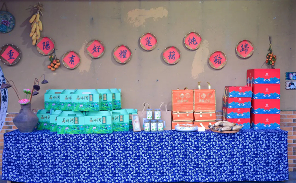 此外,活動現(xiàn)場精心打造了“重陽有好禮,蓮藕燉豬蹄”網(wǎng)紅墻,成為參會人員打卡留戀的熱門地點;同時,設(shè)置了農(nóng)副產(chǎn)品展銷區(qū),集中呈現(xiàn)紫陽蒸盆子、蒿坪河蓮藕、紫陽荷葉茶、蓮藕燉豬蹄等特色農(nóng)副產(chǎn)品。值得關(guān)注的是,硒園農(nóng)莊此次首次推出“蒿坪河蓮藕燉豬蹄”伴手禮盒,分為“四至五人份”和“八至十人份”兩種規(guī)格,于重陽節(jié)前夕上市。該禮盒將堂食菜品轉(zhuǎn)化為便攜商品,為當(dāng)?shù)厣徟轰N售拓展了新渠道,也為蓮藕產(chǎn)業(yè)鏈延伸做了初步嘗試。
