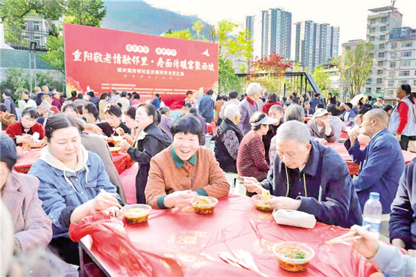 10月28日,嵐皋縣城關(guān)鎮(zhèn)西坡社區(qū)舉辦了“重陽敬老情融鄰里·壽面?zhèn)髋缇畚髌隆敝黝}活動(dòng)。廖霖 攝