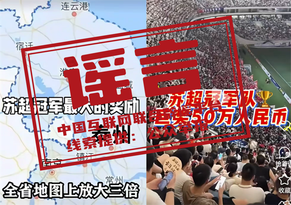 辟謠:地圖放大三個字號?獎金五十萬?這些網(wǎng)傳蘇超冠軍隊(duì)獎勵都是假的!