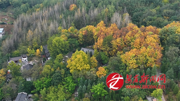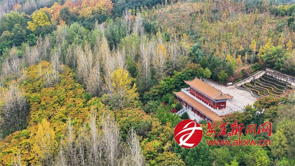 初冬時(shí)節(jié),漢陰的龍崗公園內(nèi)外層林盡染,與人文景觀交相輝映,構(gòu)成一幅流動(dòng)的山水畫卷。公園地勢連綿,園內(nèi)步道蜿蜒,亭臺(tái)錯(cuò)落。從空中望去,茂密的林木披上了紅、黃、橙交織的花衣裳,與常綠樹種相互點(diǎn)綴,猶如大地的調(diào)色盤。山頂?shù)凝垗忛w巍然屹立,在金黃烏柏與如火楓葉的簇?fù)碇校蔀檎麄€(gè)公園的視覺焦點(diǎn)。登閣遠(yuǎn)望,漢陰縣城全貌盡收眼底,月河如帶穿城而過,與秋日晴空共同勾勒出“水天一色”的壯美圖景。(通訊員 文婷 徐歡)