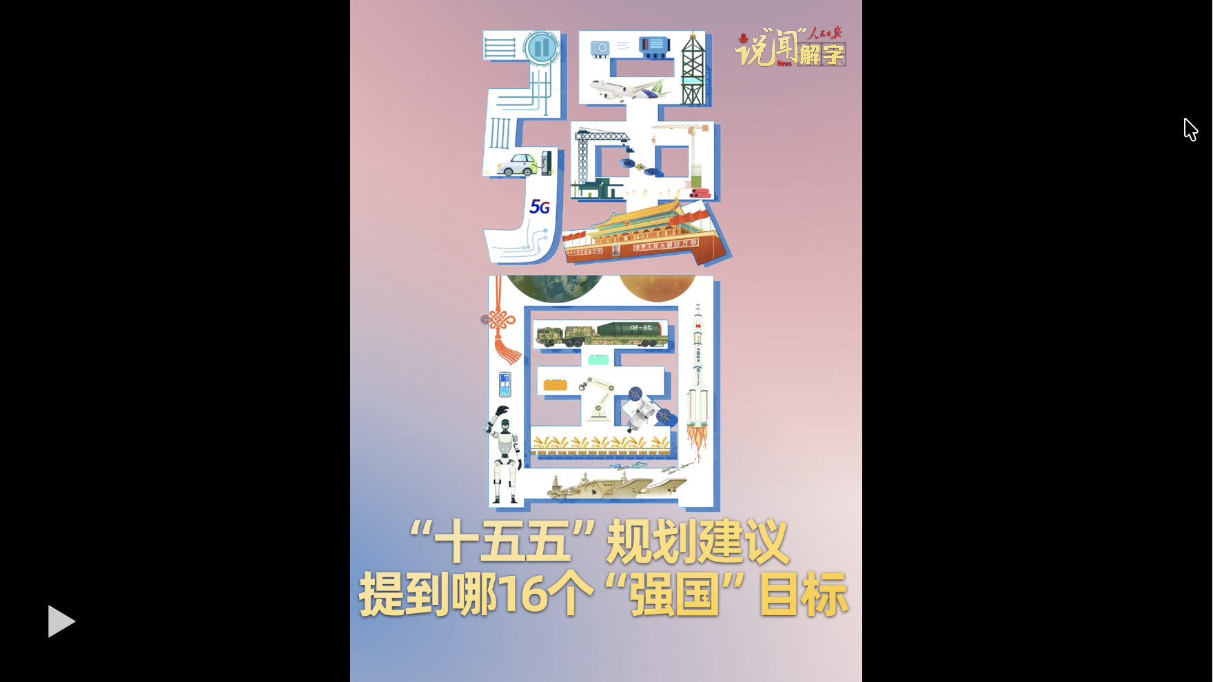 “十五五”規(guī)劃建議中提到了16個(gè)“強(qiáng)國(guó)”目標(biāo)。規(guī)劃建議聚焦哪些實(shí)際問題?我們將在哪些地方發(fā)力?一支視頻讀懂。