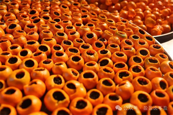 茶廠的工人們早已忙碌起來。他們將一個個挑選好的金錢桔仔細清洗掉表面的灰塵。特制的小刀輕輕掀開桔帽,果肉被小心掏出,留下一個完整的桔殼,然后再小心翼翼地清洗8至10次,直到桔皮的苦澀味兒全部去掉才能進行攤涼。那認真的模樣仿佛在對待一件件珍貴的藝術(shù)品,陽光透過窗欞,照在攤涼的桔殼上,泛著琥珀般的光澤。
