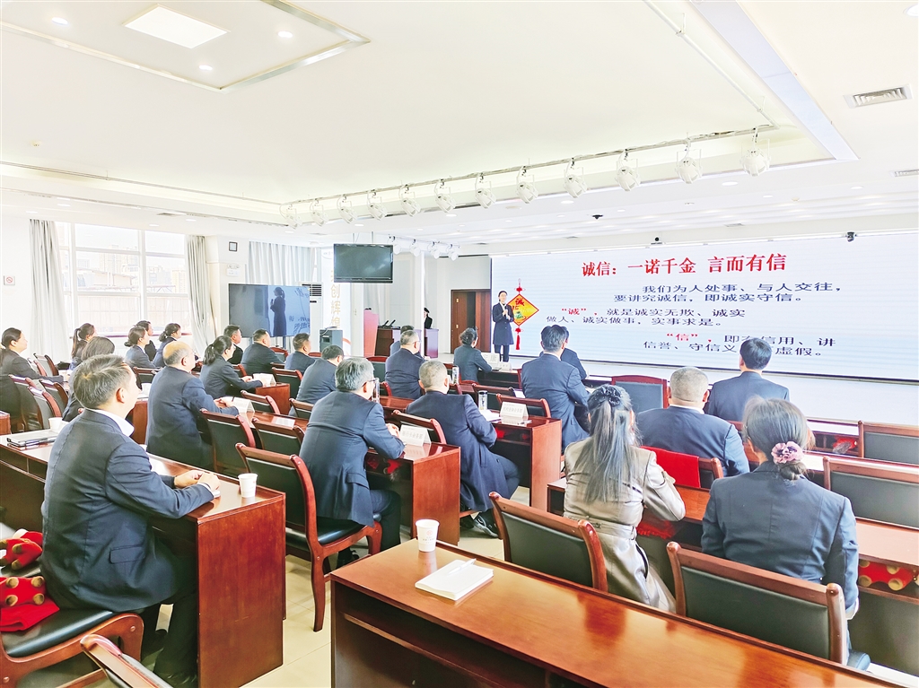 本網(wǎng)訊(記者 唐正飛 通訊員 楊光婷)“我們?yōu)槿颂幨隆⑴c人交往,要講究誠信,即誠實守信……”11月21日,中國工商銀行安康分行會議室一場“以誠立身,以信致遠”主題宣講會正在火熱進行。工作人員化身誠信“宣講員”,解讀“誠信”內涵,分享踐行誠信故事。