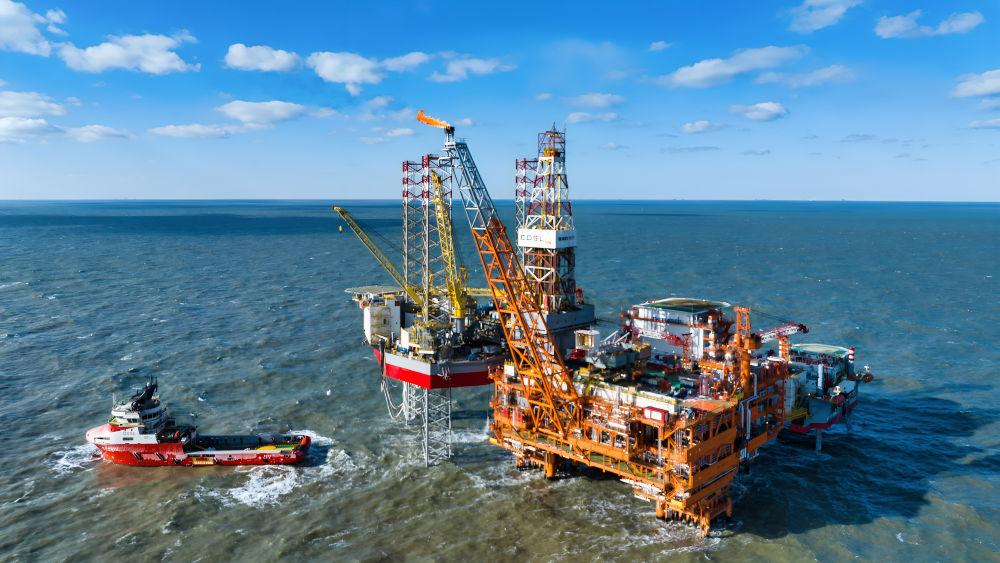 這是2025年2月8日拍攝的渤中26-6油田一期開發(fā)項(xiàng)目海上作業(yè)平臺(tái)(無人機(jī)照片)。新華社發(fā)(杜鵬輝 攝)