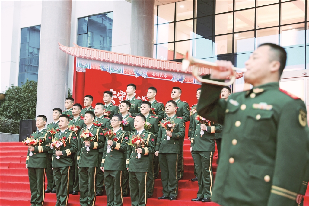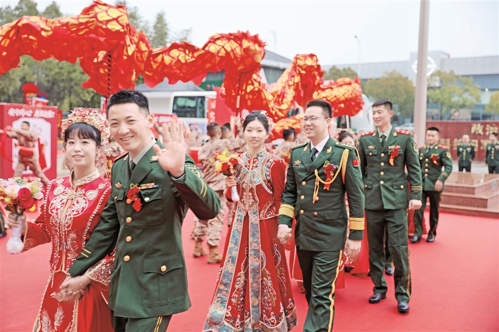 晨曦微露,新娘們身著秀禾,鬢邊珠釵搖曳;新郎們一身戎裝,身姿挺拔如松,雙方帶著滿(mǎn)心熾熱共同奔赴愛(ài)的殿堂。據(jù)了解,此次婚禮從籌劃之初便秉持“官兵滿(mǎn)意、家屬暖心”的原則,從住宿安排、婚車(chē)調(diào)度到場(chǎng)地布置、環(huán)節(jié)設(shè)計(jì),處處細(xì)致用心,雖然沒(méi)有奢華的排場(chǎng),卻處處彰顯著軍營(yíng)獨(dú)有的浪漫。