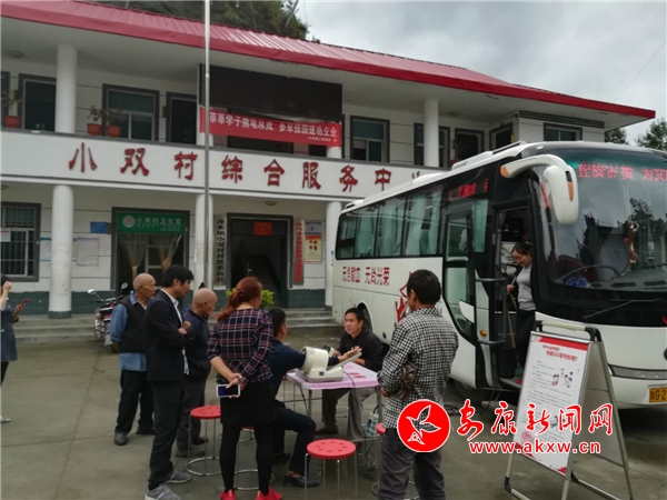 無償獻血車到小雙村,駐村干部、村干部和村民踴躍獻血。