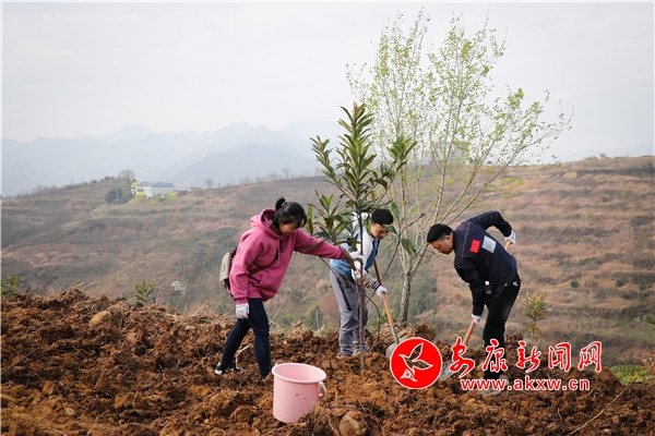 在植樹現(xiàn)場,大伙兒分工協(xié)作,揮鍬鏟土、填入樹坑、夯土壓實、提桶澆水,一派熱火朝天的勞動景象。經(jīng)過兩個小時的悉心栽植,52株枇杷樹苗迎風(fēng)挺立在黃土坡上,待到枝繁葉茂時,必將結(jié)下累累果實。