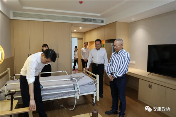 陳勇一行先后來到高新樂齡康養(yǎng)中心、安康高新醫(yī)院項(xiàng)目建設(shè)現(xiàn)場,通過實(shí)地察看、聽取介紹等方式深入了解康養(yǎng)產(chǎn)業(yè)建設(shè)情況。每到一處,陳勇都仔細(xì)看、認(rèn)真聽,在高新樂齡康養(yǎng)中心,陳勇聽取了中心負(fù)責(zé)人關(guān)于項(xiàng)目整體情況介紹,并走進(jìn)康養(yǎng)產(chǎn)業(yè)項(xiàng)目建設(shè)現(xiàn)場,具體了解項(xiàng)目進(jìn)展、硬件設(shè)施配備、服務(wù)工作開展等情況;在安康高新醫(yī)院,陳勇與項(xiàng)目有關(guān)負(fù)責(zé)人深入交談,具體了解項(xiàng)目規(guī)劃建設(shè)、投資運(yùn)營、后期管理等方面的情況。