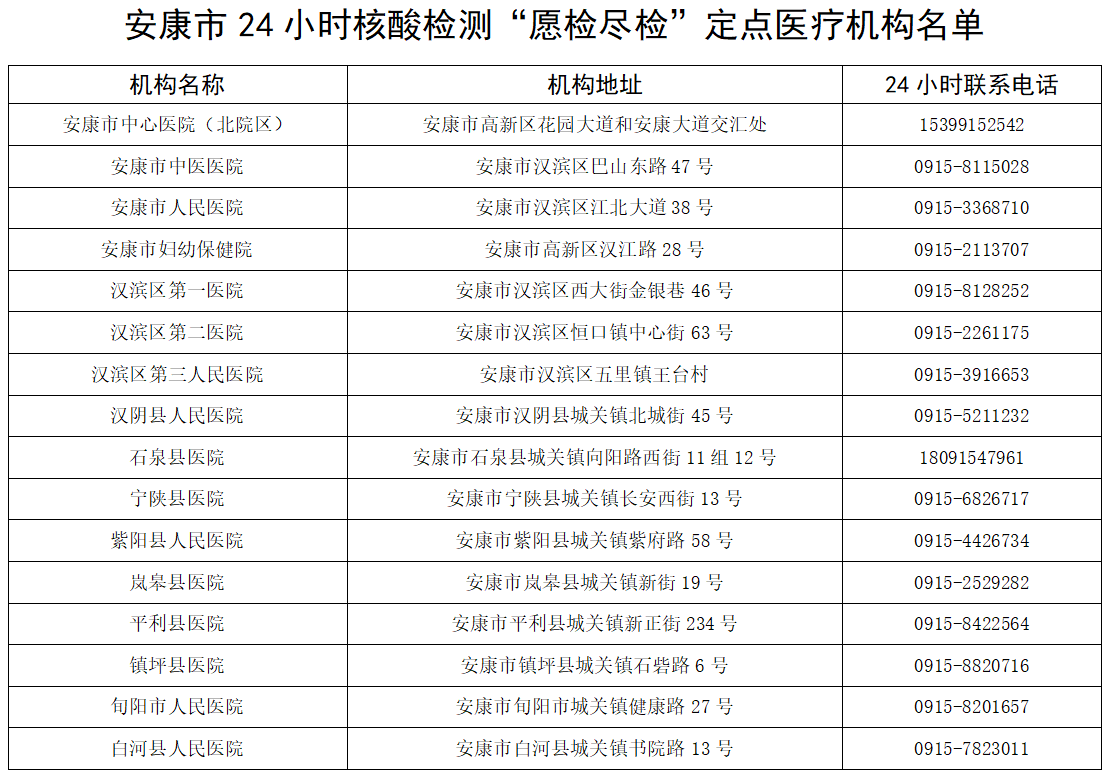 安康市24小時(shí)核酸檢測(cè)“愿檢盡檢”定點(diǎn)醫(yī)療機(jī)構(gòu)公告2FZ安康新聞網(wǎng)