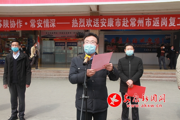 本報訊(記者 陸青波)3 月 1 日,我市開通安康-西安-常州“點對點”返崗復(fù)工人員免費專列,集中輸送151名務(wù)工人員前往常州返崗復(fù)工。市委常委、副市長劉建平出席送站儀式,并就保障農(nóng)民工返程返崗做好服務(wù)工作提出要求,對務(wù)工人員提出殷切希望。