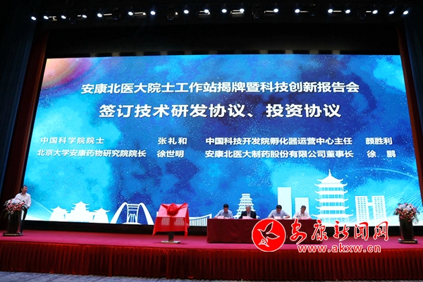 會上還簽訂了院士技術研發(fā)合作協(xié)議和投資合作協(xié)議。在隨后的科技創(chuàng)新報告會上,北京大學藥學院教授劉俊義、北京大學安康藥物研究院教授徐世明和中國科技開發(fā)院孵化器運營中心主任顏勝利分別作了學術報告。市直有關部門負責同志、安康北醫(yī)大合作企業(yè)代表以及安康學院師生代表等300余人現(xiàn)場聆聽學習。