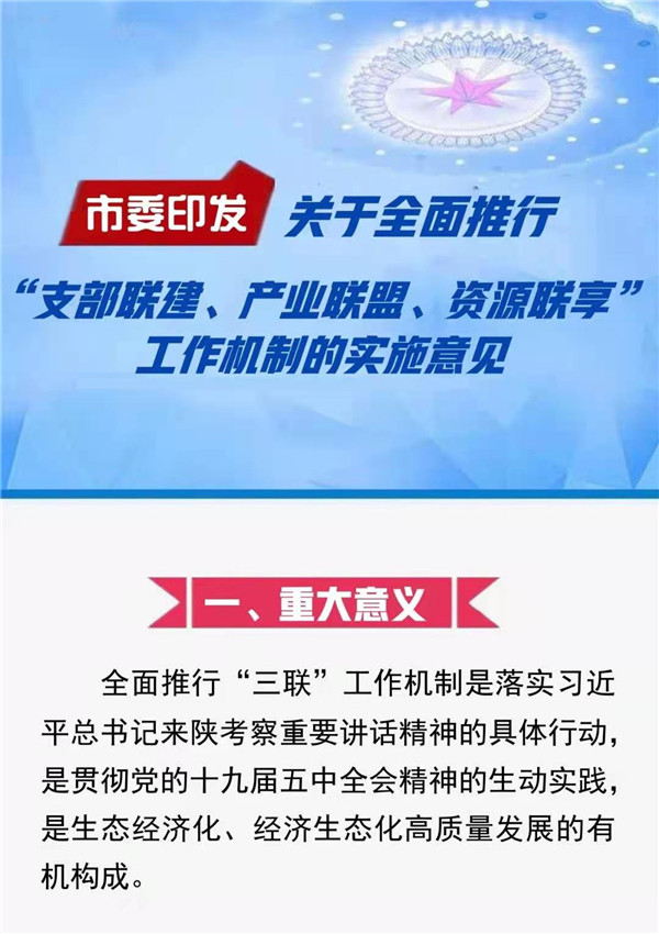 為深入貫徹落實習近平總書記來陜考察重要講話精神,實現(xiàn)鞏固拓展脫貧攻堅成果與鄉(xiāng)村振興有效銜接,以高質(zhì)量基層黨建保障高質(zhì)量發(fā)展,按照市委四屆十次全會要求,在總結(jié)漢陰等縣區(qū)試點經(jīng)驗的基礎上,現(xiàn)就全面推行“支部聯(lián)建、產(chǎn)業(yè)聯(lián)盟、資源聯(lián)享”(以下簡稱“三聯(lián)”)工作機制,提出如下實施意見。r3V安康新聞網(wǎng)
