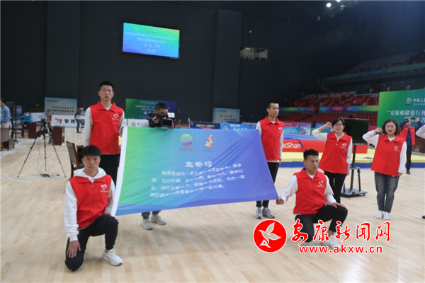 隨后市委文明辦思想道德建設(shè)科科長(zhǎng)、項(xiàng)目競(jìng)委會(huì)志愿者和觀眾服務(wù)處副處長(zhǎng)劉獻(xiàn)兵帶領(lǐng)全場(chǎng)志愿者進(jìn)行宣誓。大家鏗鏘有力的宣讀著誓詞:“我愿意成為一名光榮的青年志愿者。我承諾:盡己所能,不計(jì)報(bào)酬,幫助他人,服務(wù)社會(huì)。踐行志愿精神,傳播先進(jìn)文化,為辦一屆精彩圓滿的體育盛會(huì)貢獻(xiàn)一份力量。”