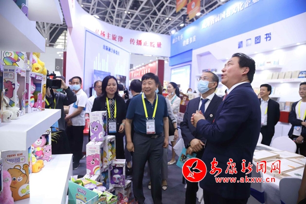 本網(wǎng)訊(記者 吳單)5月11日上午,第五屆絲綢之路國際博覽會暨中國東西部合作與投資貿(mào)易洽談會在西安開幕,中宣部對外推廣局副局長夏云海視察了絲博會文化產(chǎn)業(yè)館毛絨玩具展區(qū),對我市毛絨玩具文創(chuàng)產(chǎn)業(yè)的發(fā)展給予高度評價。