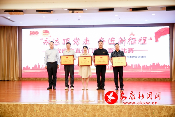 經(jīng)過(guò)選手激烈地比拼和角逐,評(píng)委公正地打分和評(píng)判,最終來(lái)自市教體局的武霞和市委辦的李敏榮獲一等獎(jiǎng),3人榮獲二等獎(jiǎng),5人榮獲三等獎(jiǎng),產(chǎn)生了10名優(yōu)秀獎(jiǎng),并為4個(gè)單位頒發(fā)了比賽優(yōu)秀組織獎(jiǎng)。據(jù)了解,這些獲獎(jiǎng)選手將擇優(yōu)推薦參加全市的群眾宣講比賽總決賽。