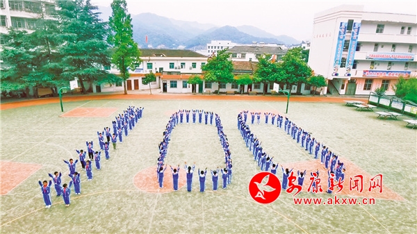 (6月25日,石泉縣城關(guān)鎮(zhèn)中心小學(xué)“童心向黨輝煌百年”主題教育活動(dòng)中,學(xué)生組成“100”、心形等字樣造型方陣,手揮國(guó)旗,齊聲高呼:祝中國(guó)共產(chǎn)黨生日快樂(lè)!杜懷 許啟軍 攝)