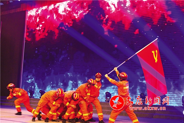 (6月26日,“永遠(yuǎn)跟黨走·逐夢(mèng)火焰藍(lán)”安康市消防救援支隊(duì)?wèi)c祝建黨100周年文藝匯演在石泉大劇院精彩上演,參加演出的消防員用嘹亮的歌聲、熱情的舞蹈真摯的表達(dá)感謝黨、感恩黨、祝福黨。劉紀(jì)麟 攝)