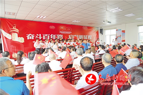 (6月25日,嵐皋縣城關(guān)鎮(zhèn)西坡社區(qū)黨總支部委員會(huì)、共駐共建單位200余名黨員和群眾歡聚一堂,舉行“奮斗百年路·啟航新征程”活動(dòng)。廖霖 攝)