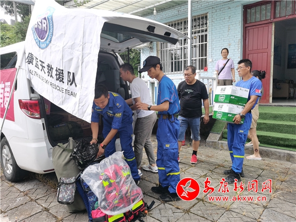 浮力馬甲、頭盔、拋繩包、50米繩、30米繩、急救包、固定板、太陽燈……準備現(xiàn)場,隊員們逐一認真核對所攜帶的救援裝備,不時有志愿者送來捐贈的生活用品。