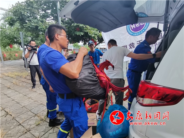 出發(fā)前,市應(yīng)急管理局負責人前來為隊員們送行,囑托他們平安歸來。上午10時,藍天救援隊準時出發(fā),奔赴河南。