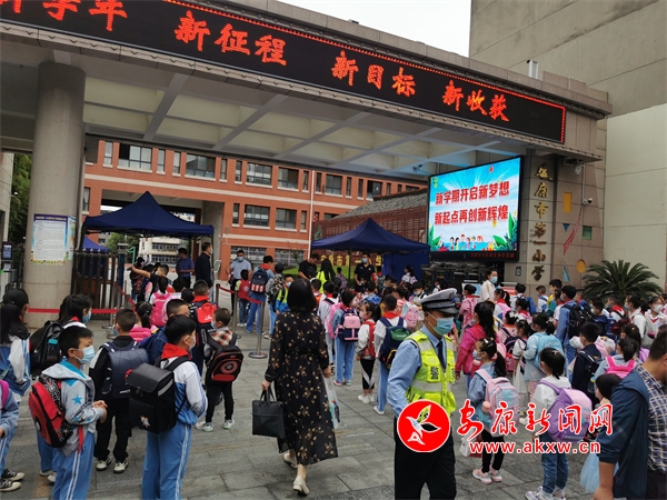 9月1日,新學(xué)期如期開學(xué),安康中心城區(qū)的漢濱小學(xué)、安康陽光學(xué)校、安康市第一小學(xué)的門口秩序井然,小學(xué)生們戴著口罩,精神抖擻排著隊等候進(jìn)入校園。公安、城管在現(xiàn)場加強(qiáng)疏導(dǎo),學(xué)校周邊交通秩序正常,祝小小少年,健康成長,揚(yáng)帆遠(yuǎn)航。(鄭時根 攝)BDD安康新聞網(wǎng)