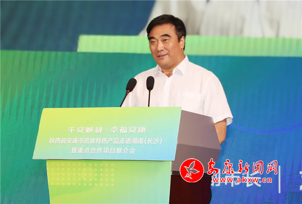 本網(wǎng)訊(記者 艾蓓)9月27日,由中共安康市委、安康市人民政府,陜西省商務(wù)廳聯(lián)合主辦的“平安順利·幸福安康—陜西省安康市名優(yōu)特色產(chǎn)品走進(jìn)湖南(長(zhǎng)沙)暨重點(diǎn)合作項(xiàng)目推介會(huì)”在長(zhǎng)沙市成功舉辦。市委書(shū)記趙俊民,湖南省長(zhǎng)沙市副市長(zhǎng)劉明理,陜西省商務(wù)廳一級(jí)巡視員唐宇剛出席會(huì)議并致辭。市人大常委會(huì)副主任周永鑫出席會(huì)議。副市長(zhǎng)楊淼主持會(huì)議。