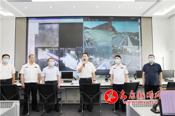 趙俊民、武文罡一行首先來到市公安局交警支隊交通應急指揮中心,通過高速公路“情指勤督宣”平臺查看重點路段、重要路口交通情況,認真聽取假期交通保暢情況匯報。趙俊民指出,國慶假期,人流、車流、物流量劇增,道路交通安全風險加大,公安交警部門要加強調度指揮和值班值守,強化客運車輛和駕駛員安全管理,嚴格落實安全保障和應急處置措施,確保全市道路交通安全形勢持續(xù)穩(wěn)定。要結合安康實際情況,科學研判交通流量變化趨勢,及時發(fā)布預警信息,精準調度警力,加強疏導管控,確保廣大群眾和來安游客出行安全暢通。廣大交警在執(zhí)勤過程中要切實增強安全防護意識,提升自我防護能力,確保自身安全。